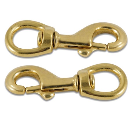 Hebillas de latón con gatillo de cierre típicamente usado en los asientos y riñoneras de los kayaks. El aro gira para evitar que las cinchas se enreden sobre si mismas.