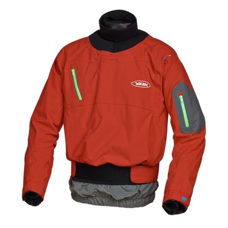 Anorak de 2.5 capas y altas prestaciones con látex en cuello y puños diseñado para kayakers de aguas bravas. Equipado con la membrana impermeable/transpirable DX10K.
