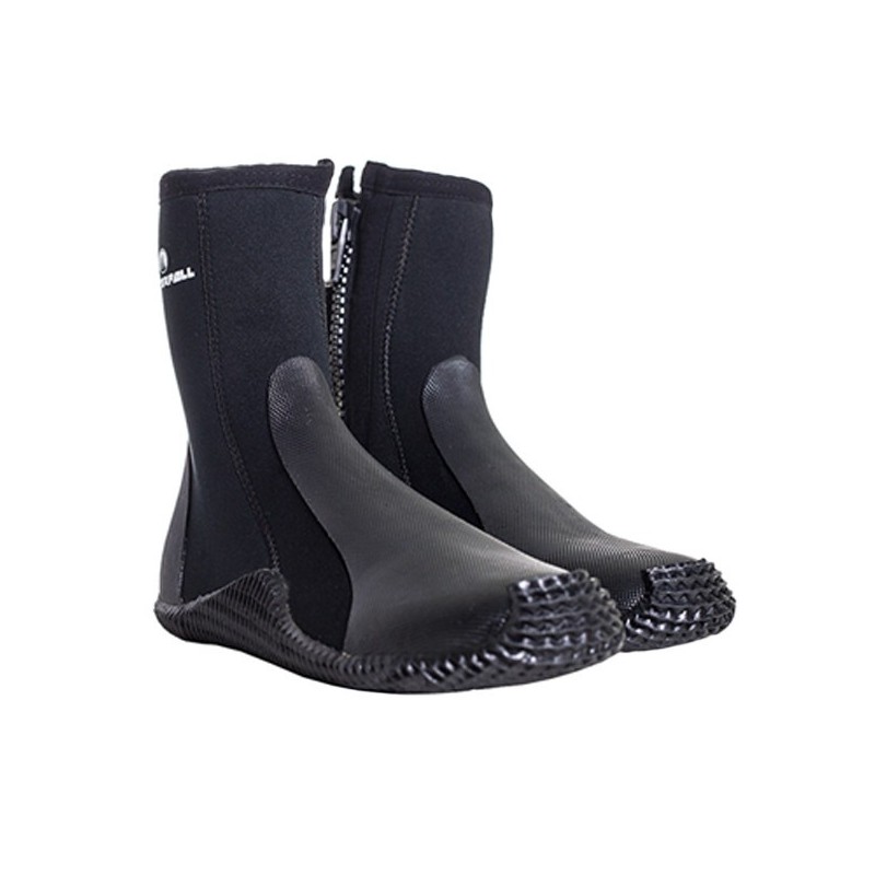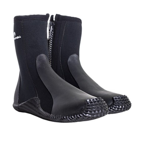 Botas con suela de goma rugosa y cremallera. Protección extra en la puntera y en el empeine para los porteos entre piedras. 5mm de neopreno para mantener tus pies calientes y confortables.