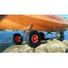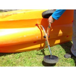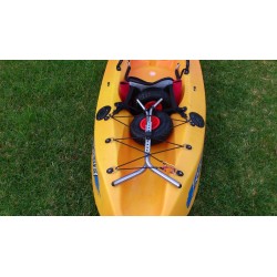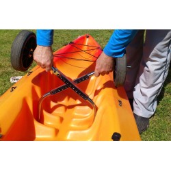 Con este carro podrás llevar tu piragua sit-on-top cómodamente encajándolo en los agujeros de drenaje. Se adapta a la mayoría de los modelos del mercado, muy rápido de colocar y sin necesidad de utilizar cinchas para amarrar la embarcación.
