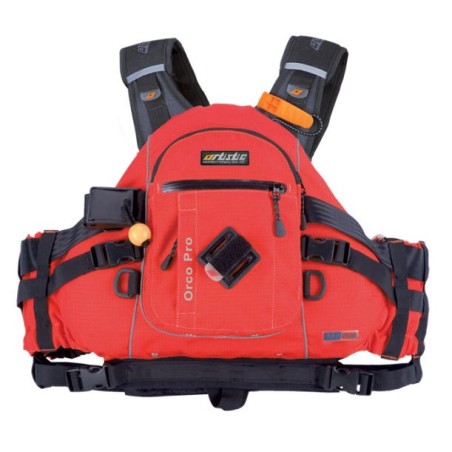Chaleco de aguas bravas y kayak de mar de gama alta con arnés, tirador antipánico y múltiples detalles técnicos. Parte superior despejada para facilitar los movimientos al palear y el esquimotaje.