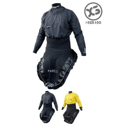 Cubreanorak seco de tres capas. Con su corte en la parte superior nos permite gran movilidad sin tensiones. Además con sus puños y cuello de látex lo hacen un anorak estanco perfecto para las aguas bravas.