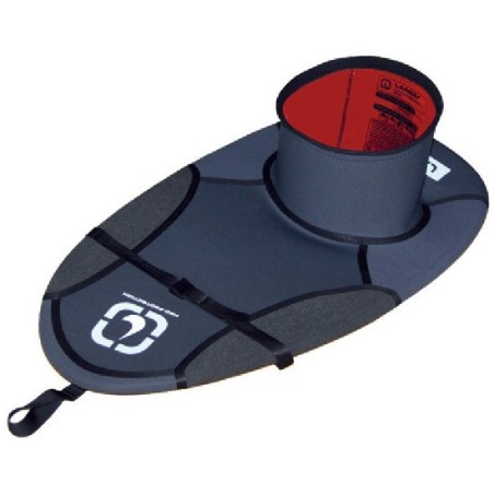 Fabricado con neopreno de 4mm y kevlar en las partes más expuestas al desgaste. Muy estanco y seguro para aguas bravas, creek o kayaksurf. Equipado con cincha transversal para ajustar la tensión del cubrebañeras.