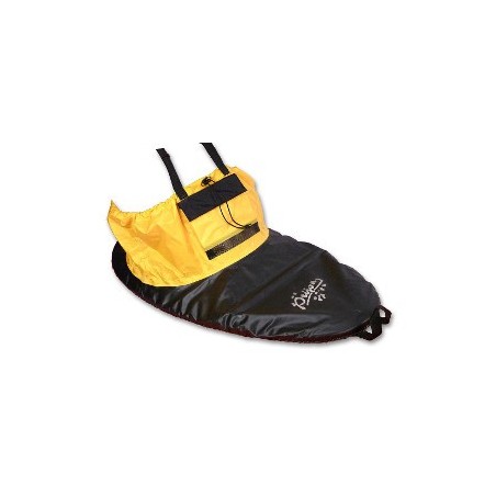Cubre con badana de nylon reforzado y cintura de fino nylon cómodo y agradable. Cintura regulable, y tirantes elásticos. Asa antipánico y bolsillo frontal con cierre de velcro.