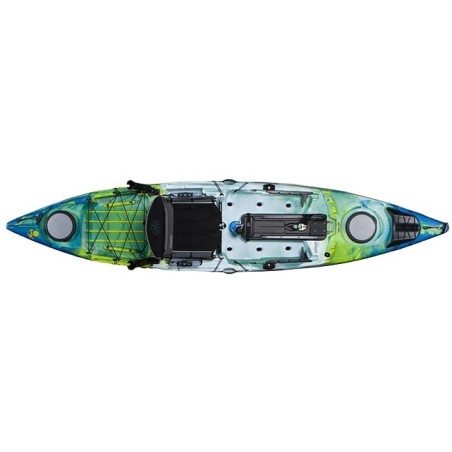 Un kayak rápido para cubrir distancias medias y muy estable, incluso te permite ponerte de pie en láminas de agua tranquilas. Diseñado para la pesca, su cubierta te permitirá tener los aparejos a mano, además de guardar y amarrar correctamente las cañas.