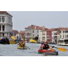 Se puede combinar con un cubrabañeras ya que la brazola es hinchable, dándole la rigidez necesaria para sujetar firmemente el faldón del cubrebañeras.