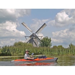 El kayak hinchable AdvancedFrame® es un híbrido plegable e hinchable. Gracias a las varillas de aluminio que incorpora en la parte delantera y trasera del casco corta el agua como un cuchillo, manteniendo además muy bien el rumbo como los modelos rígidos de plástico o fibra. La popa trabaja como una orza, mejorando el direccionamiento.