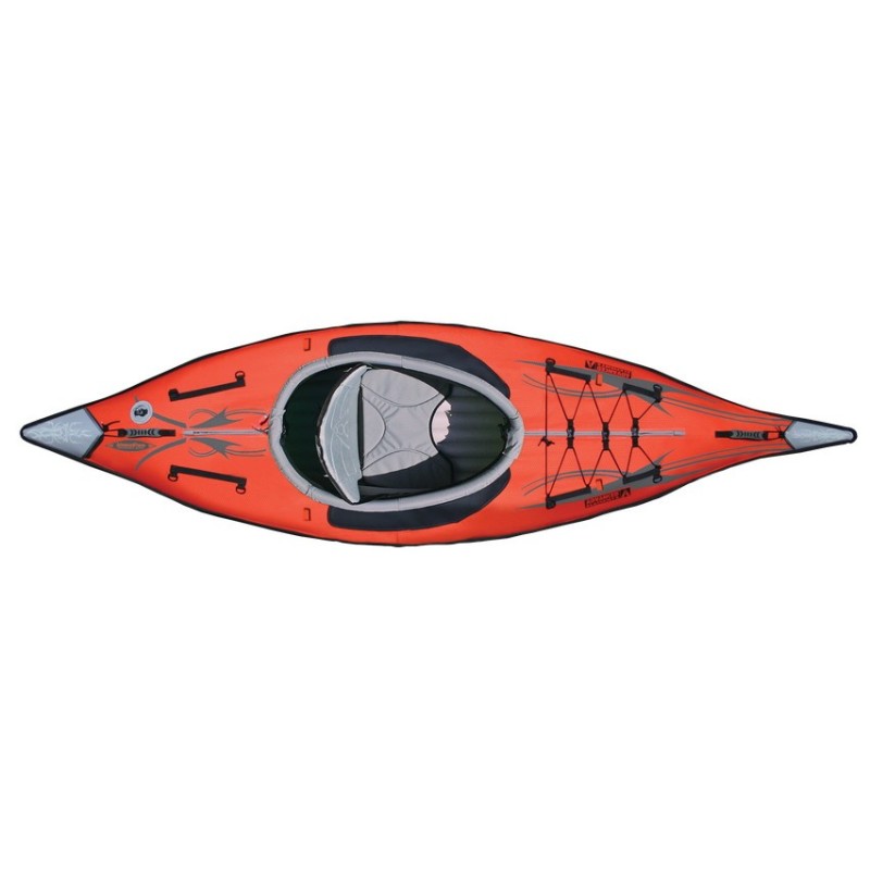 El kayak hinchable AdvancedFrame® es un híbrido plegable e hinchable. Gracias a las varillas de aluminio que incorpora en la parte delantera y trasera del casco corta el agua como un cuchillo, manteniendo además muy bien el rumbo como los modelos rígidos de plástico o fibra.