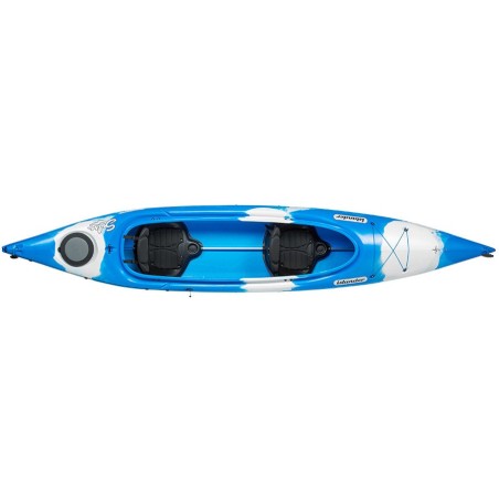 Un kayak ideal para familias, con dos asiento muy cómodos y un hueco central para un niño. La anchura de su casco lo hace una plataforma estable que a la vez gira fácil, y con una deriva retráctil para dirigirlo.