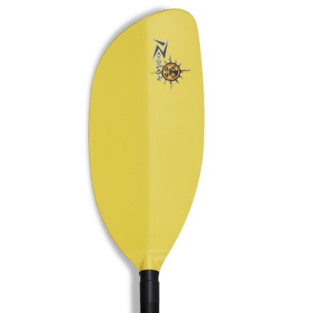 Pala con la pértiga de fibra de vidrio y las cucharas de nylon más fibra de vidrio, perfecta para los palistas que empiezan en las aguas bravas y quieren una pala ligera, con hojas que permiten un esquimotaje fácil y buena tracción al palear.