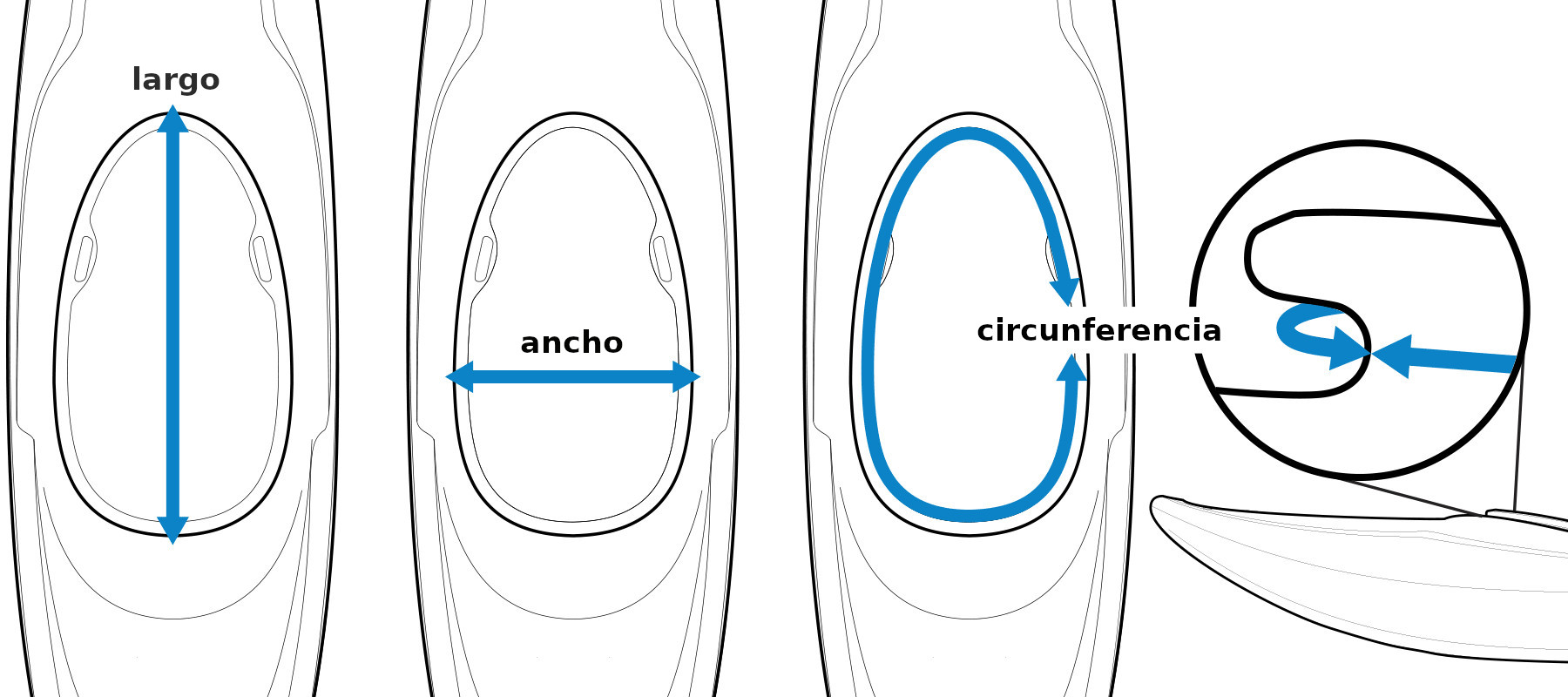 | R4 | Keyhole | 207-217 | 83-89 cm | 47-50 | Kayaks de aguas bravas y algunos kayaks de mar |